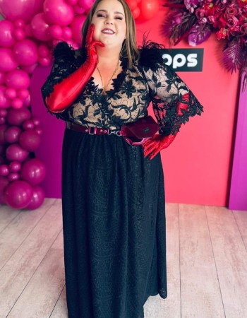 Trudno nie wspomnieć o wyjątkowej kreacji Joanny Gacek Sroka, która oczarowała wszystkich. Projektantka Anna Kierecka przygotowała dla Joanny czarną suknie ozdobioną koronką i piórami. Właścicielka Props dobrała do tego czerwone długie rękawiczki i nerkę z własnej kolekcji.