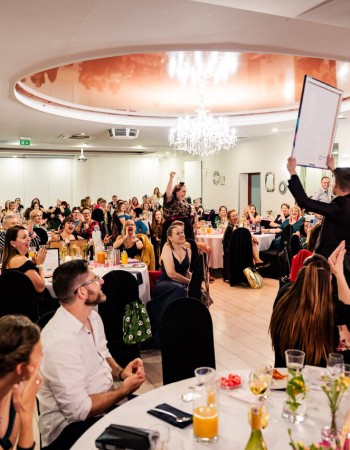 Przepiękna sala, okrągłe stoły, kolorowa balonowa ścianka i pyszne jedzenie. Bankiet na najwyższym poziomie, klasa i styl. Ponad 100 kobiet (i kilku panów) ubrane w stylizacje glamour. Długie suknie, szpilki, piękne upięcia i niezwykłe makijaże. Każda czuła się jak milion dolarów, tak jakby przybyła na bal.